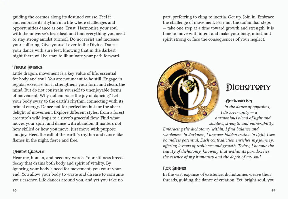 This stunning deck holds a gateway to an extraordinary realm, where a trinity of dragons embody the essence of the universe. With every card, Lux, Terra and Umbra offer unwavering support, shielding you from life’s storms and embracing you with dragon wisdom and boundless love. May the dragons’ presence empower you on your quest for healing and self-discovery, leading you closer to the magic within. Includes 54 round cards and 160-page guidebook.