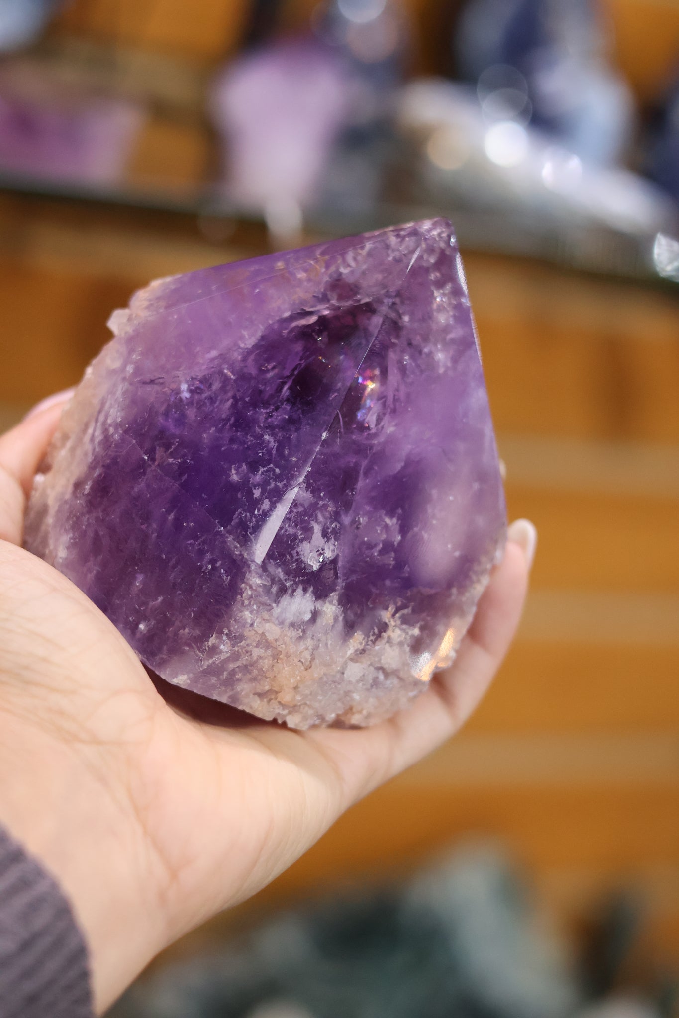 Called the "All Healer." Amethyst is a powerful tool for spiritual expansion and cognitive understanding. Stimulates the higher mind and allows one to easily enter into a meditative state. A natural choice for psychic opening and intuitive work. Creates a powerful resonant field that helps to remain clear and centered while staying open to spiritual direction and intuitive information. Cleans all other stones.