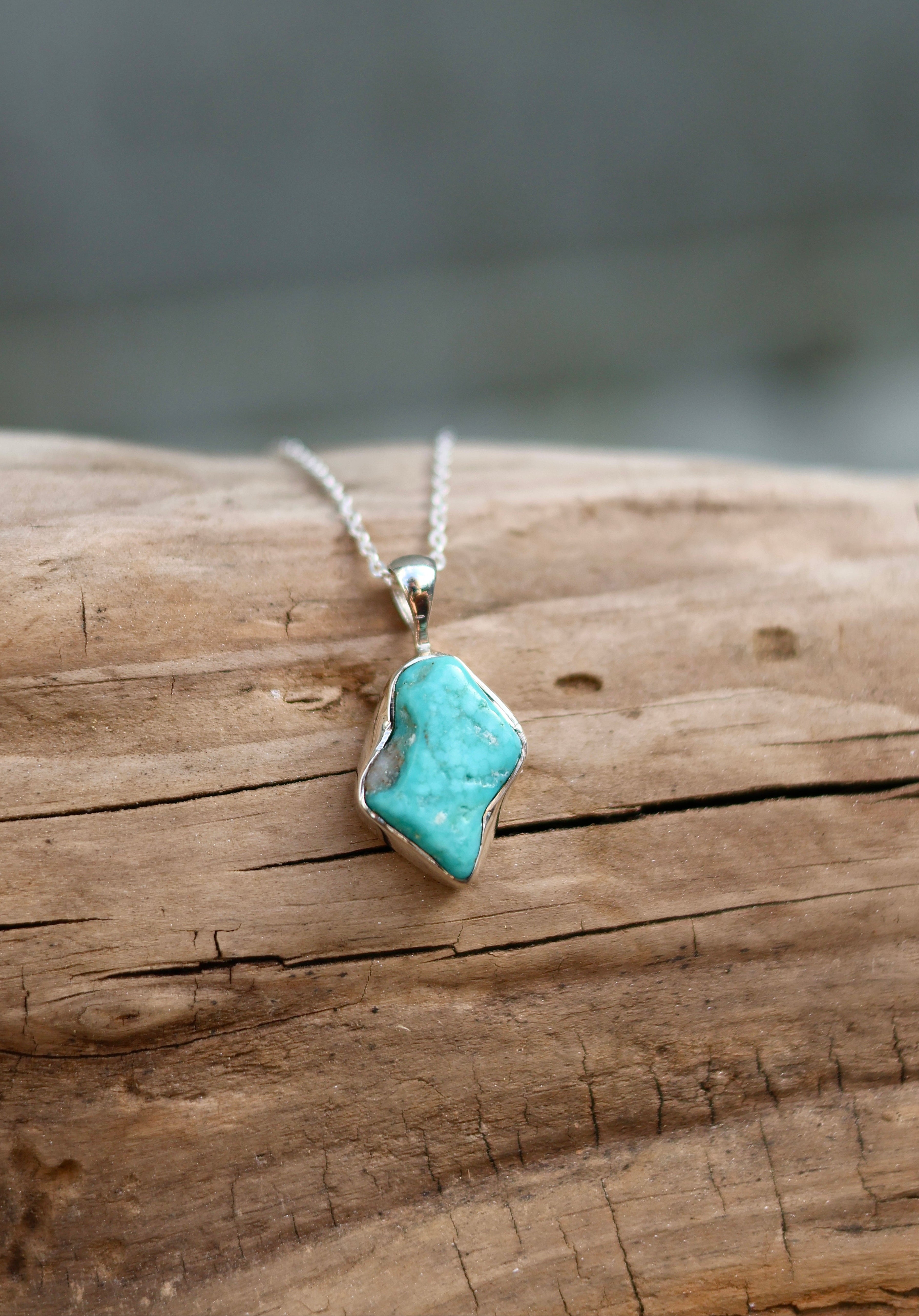 This dainty turquoise necklace combines the vivid, natural beauty of turquoise with the sleek elegance of a sterling silver chain. Known as a stone of protection, wisdom, and tranquility, turquoise has long been cherished for its calming blue-green hues and powerful energy. The delicate sterling silver setting enhances the stone’s vibrant color, creating a refined, minimalist look that complements any style.