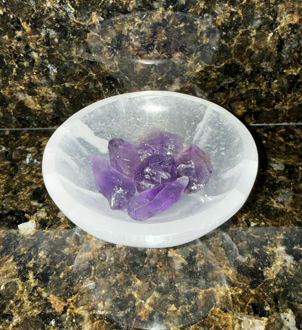 The bowl is a great way to display other crystals. I put pieces of rough amethyst in the bowl and the contrast of colors were stunning.