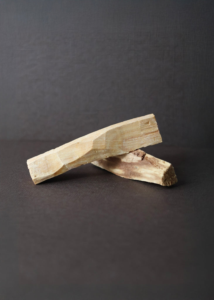 Palo Santo or "Holy Wood" is a tree that grows on the coast of South America and is related to Frankincense, Myrrh and Copal. It is an aromatic wood used for centuries by the Incas and other cultures as a spiritual remedy. Used for incense and smudging it creates a pleasant, fresh smelling smoke with hints of mint and citrus with underlying notes of frankincense. Thought to purge bad spirits, it is also said that it enhances creativity and brings good fortune. Peruvians harvest fallen branches and twigs of the tree, a practice that is regulated by the government of Peru, so trees are not cut for wood harvesting.